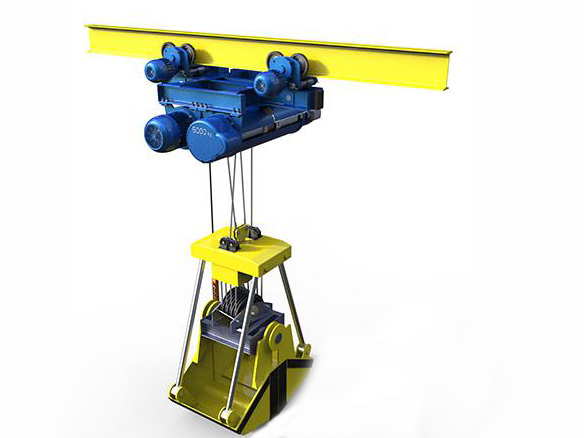 CD/MD型抓斗電動(dòng)葫蘆往往與懸掛小車、承載梁、四繩抓斗等相連接組成一種架空運(yùn)輸裝置(即抓斗起重機(jī)),可以不占場地,僅靠架空軌道運(yùn)行的懸掛式架空小車來實(shí)現(xiàn)工段與工段之間、車間與車間之間、工廠與工廠之間的大量散粒物品的裝卸和運(yùn)輸。