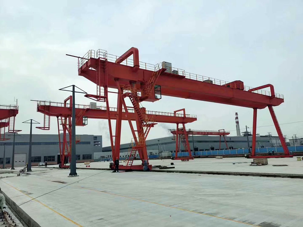 它的金屬結(jié)構(gòu)像門形框架,承載主梁下安裝兩條支腳,可以直接在地面的軌道上行走,主梁兩端可以具有外伸懸臂梁。