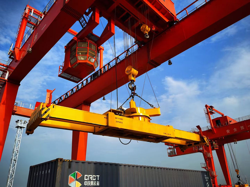 門式起重機是橋式起重機的一種變形,又叫龍門吊。主要用于室外的貨場、料場貨、散貨的裝卸作業(yè)。門式起重機具有場地利用率高、作業(yè)范圍大、適應(yīng)面廣、通用性強等特點,在港口貨場得到廣泛使用。