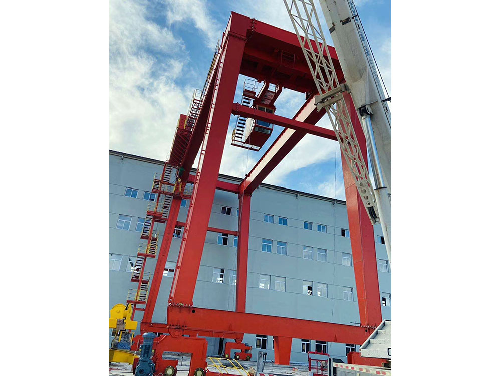 它的金屬結(jié)構(gòu)像門形框架,承載主梁下安裝兩條支腳,可以直接在地面的軌道上行走,主梁兩端可以具有外伸懸臂梁。